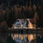 A refined modern home designed to harmonize with the calm surrounding lake.